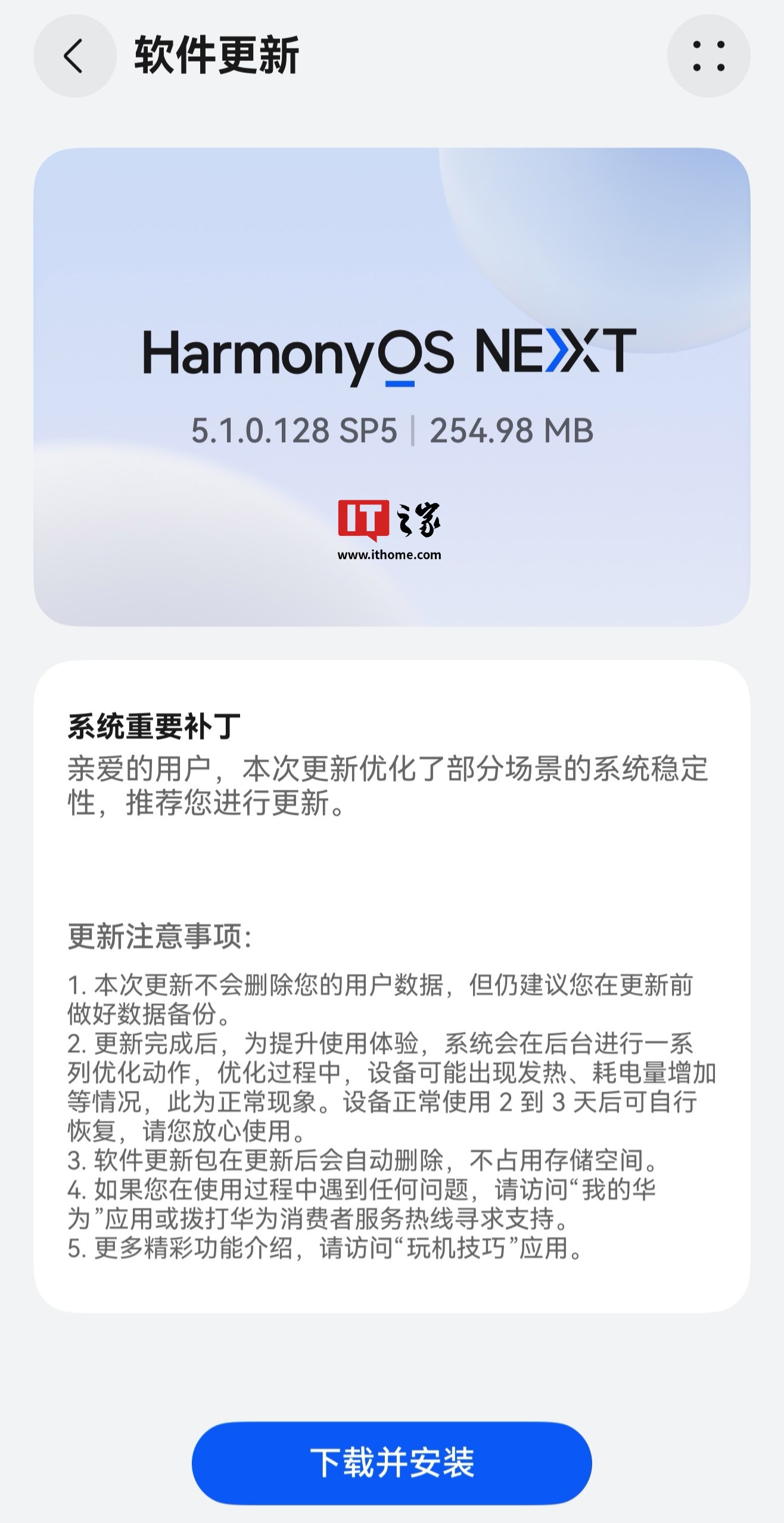 IT之家 8 月 4 日音尘,升级至鸿蒙HarmonyOS 5.1 版块的华为手机(含 Mate 60、Mate 70 系列等)当今正推送系统补丁包,大小约 254.98MB。更新日记涌现,优化部分场景的系统辖路性。