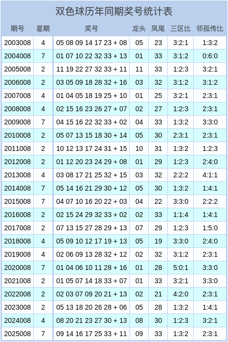 双色球历史同时奖号统计图